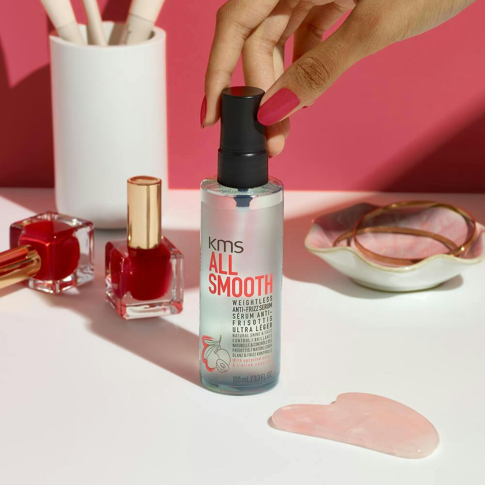 Gönn Dir geschmeidig-glattes Haar, das jeder Bewegung standhält – mit dem KMS ALLSMOOTH Anti-Frizz Serum für ein gepflegtes, frizzfreies Finish, das sich einfach gut anfühlt.